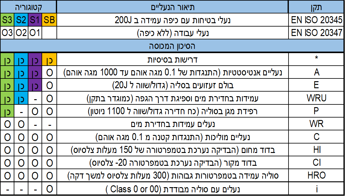 תכונות כל הדגמים שבאתר, עולות על הנדרש בתקנים הבאים: EN ISO 20344:2011 (ת"י 1112 – חלק 1)